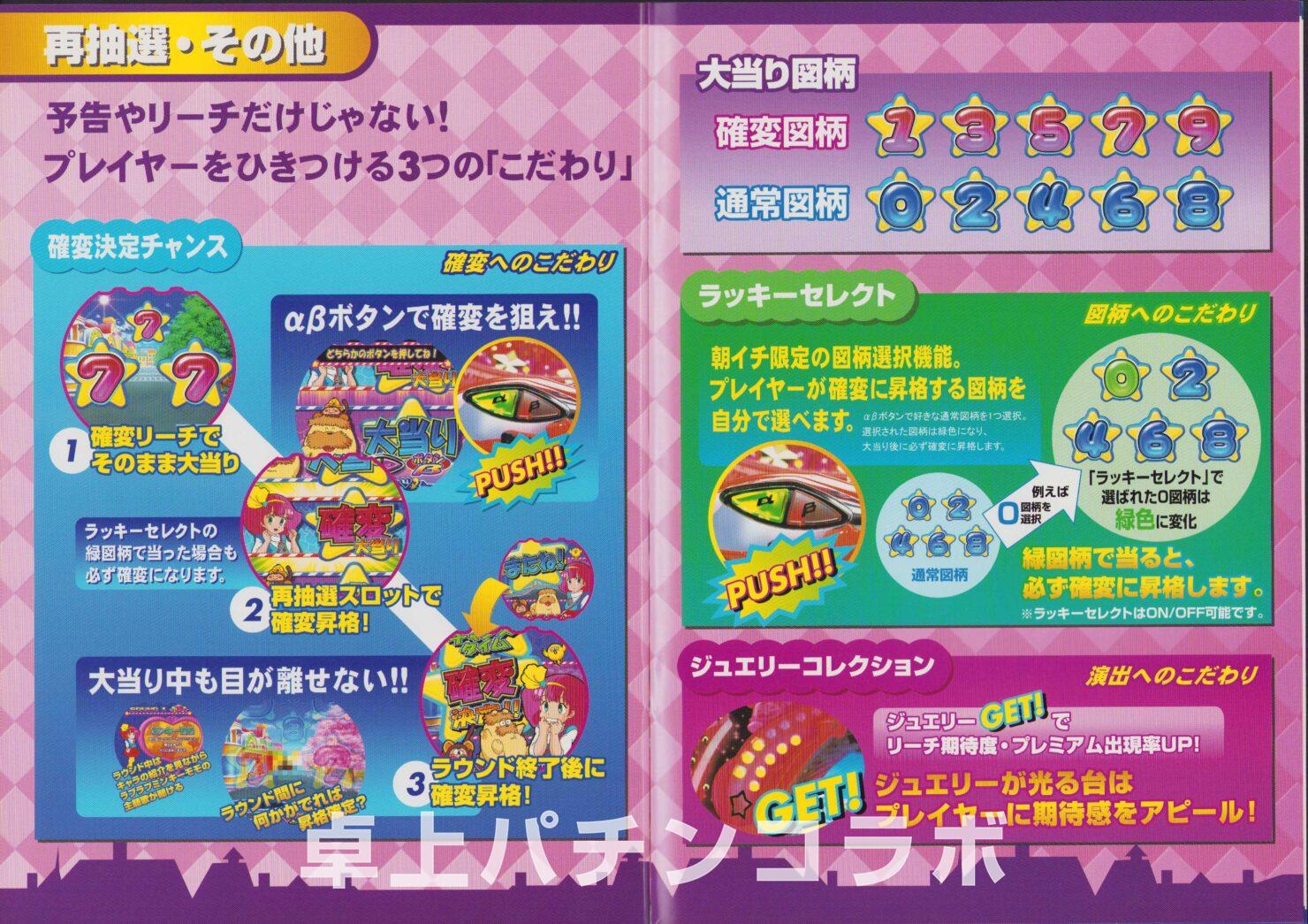 1/2確変、全ての大当り後100回時短 |