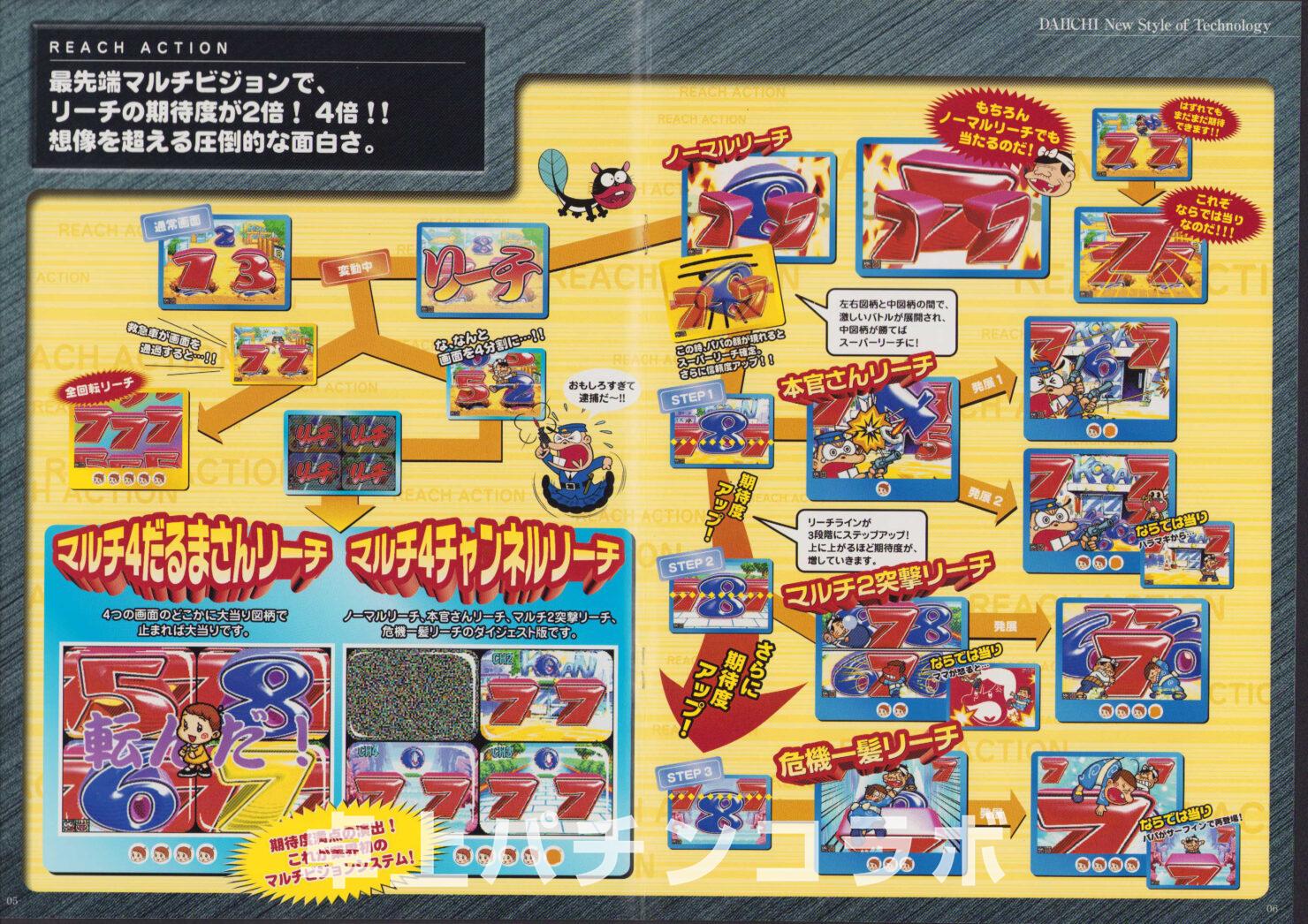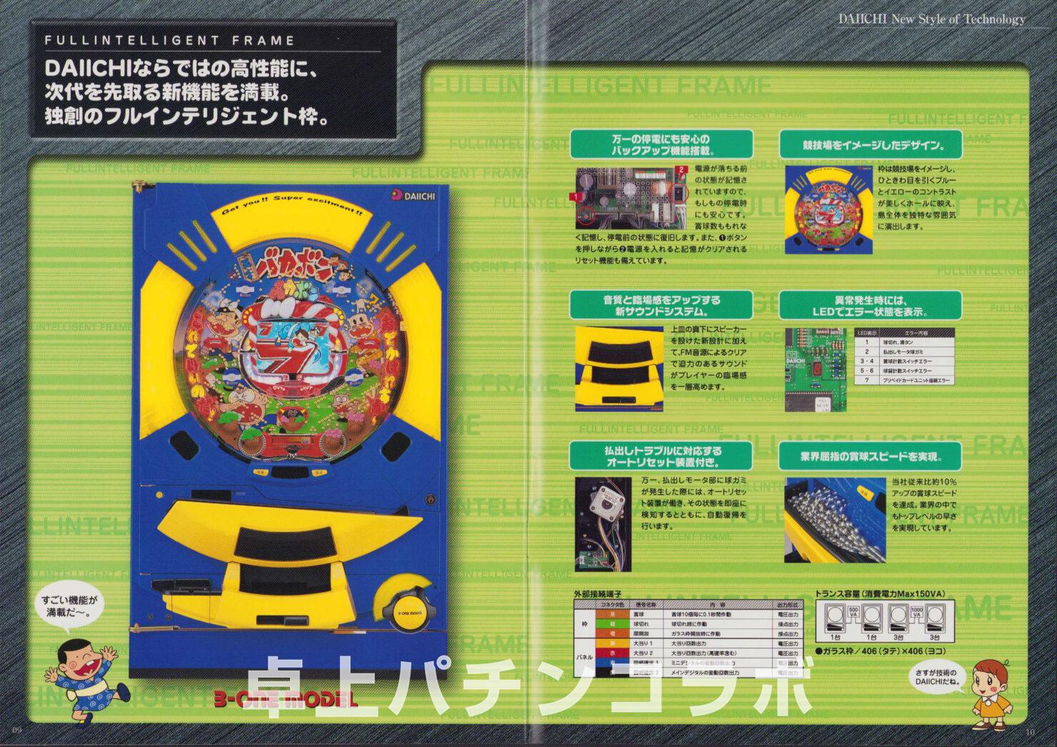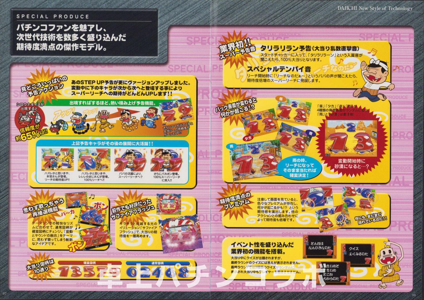 大当り確率1/315.5のCR機デジパチです。 (機種名CR天才バカボンV、ダイイチ2001年) 1、3、5、7、9の絵柄で大当りすると 次回までの確率変動に突入&継続します。