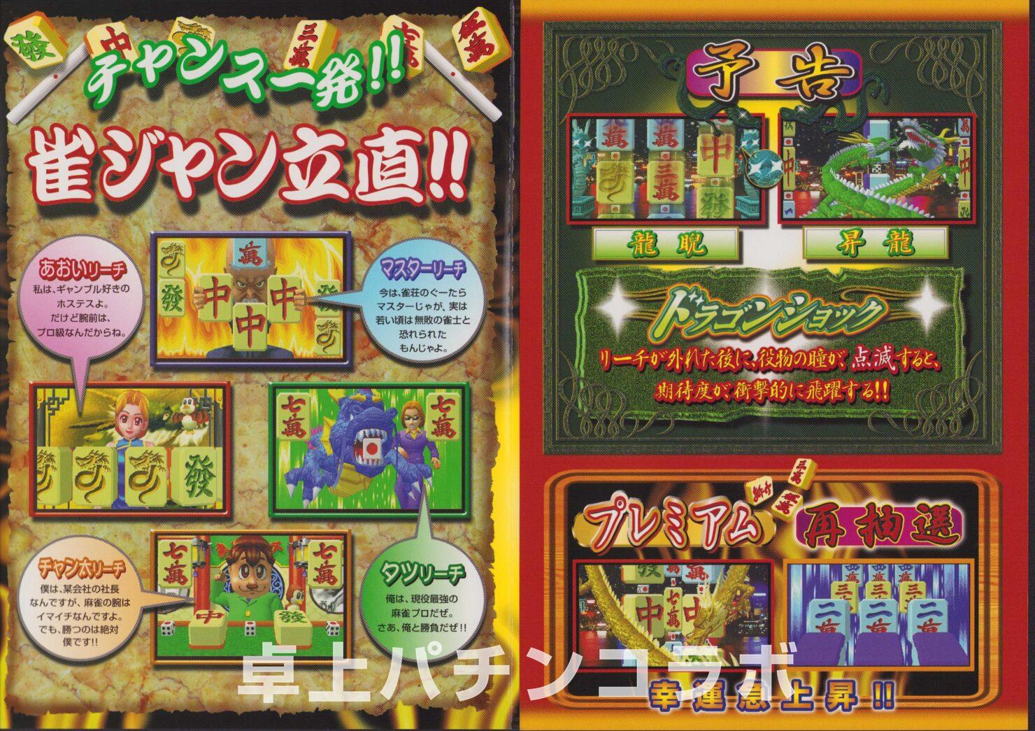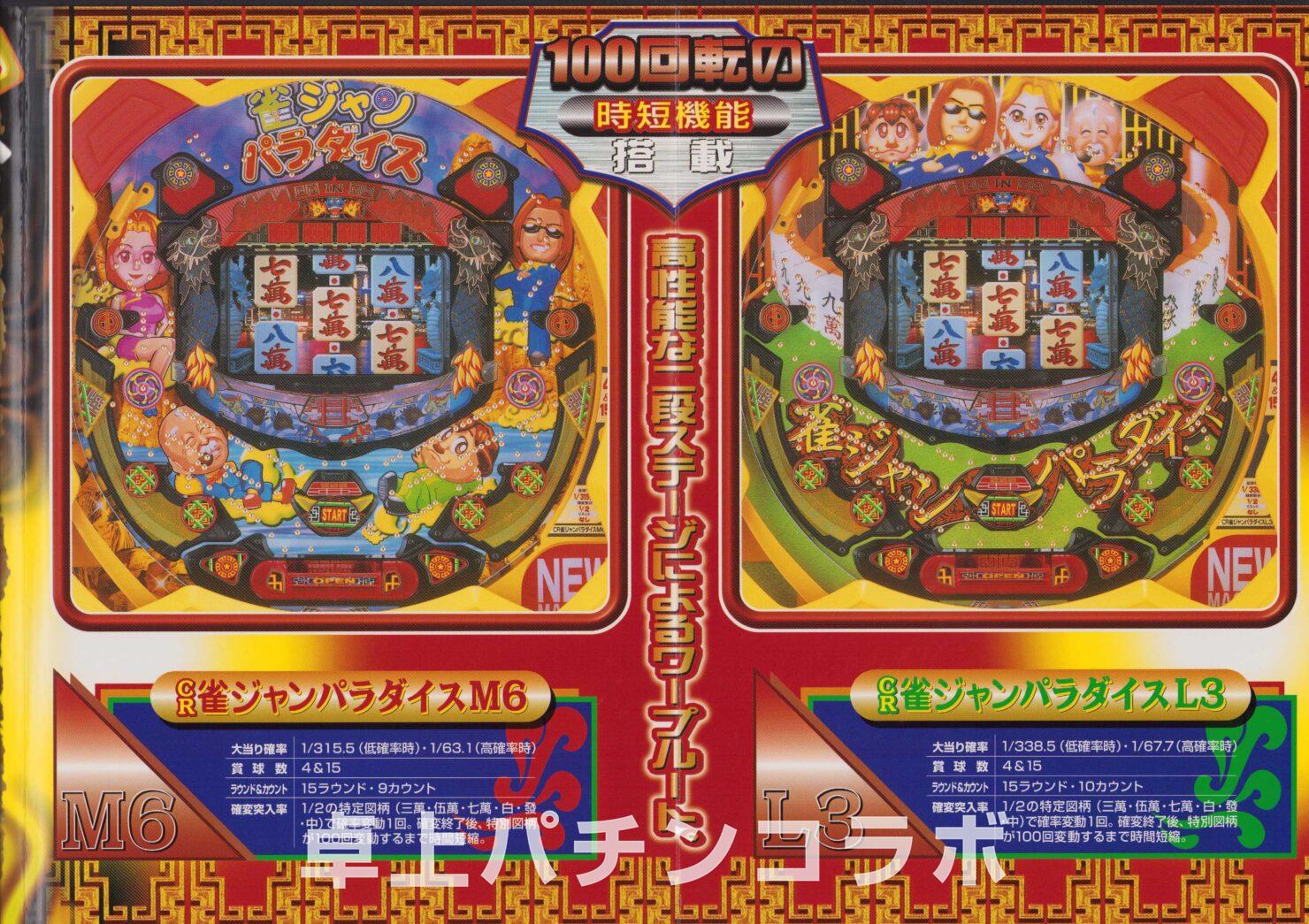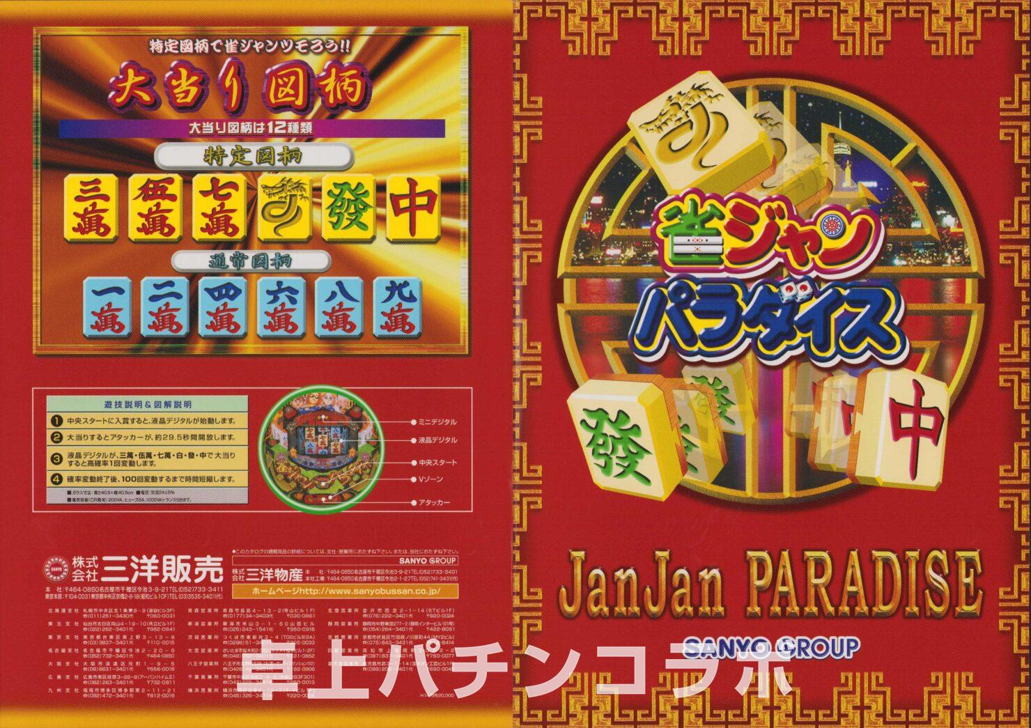 大当り確率1/315.5のCR機デジパチです。 (三洋、2002年) 三、五、七、白、發、中の絵柄で大当りすると 次回までの確率変動に突入&継続します。